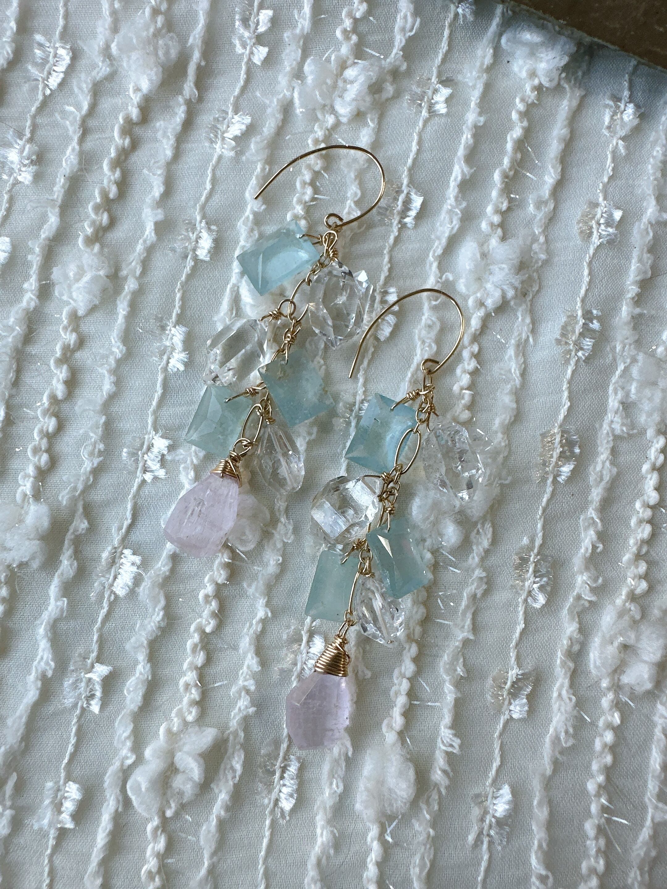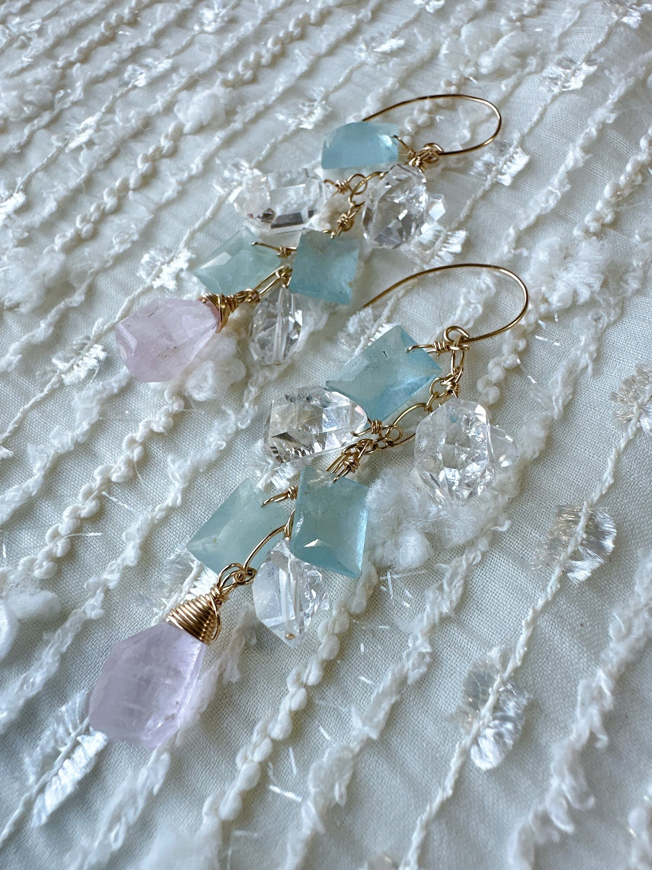 シンデレラアクアマリンとクンツァイトのピアス