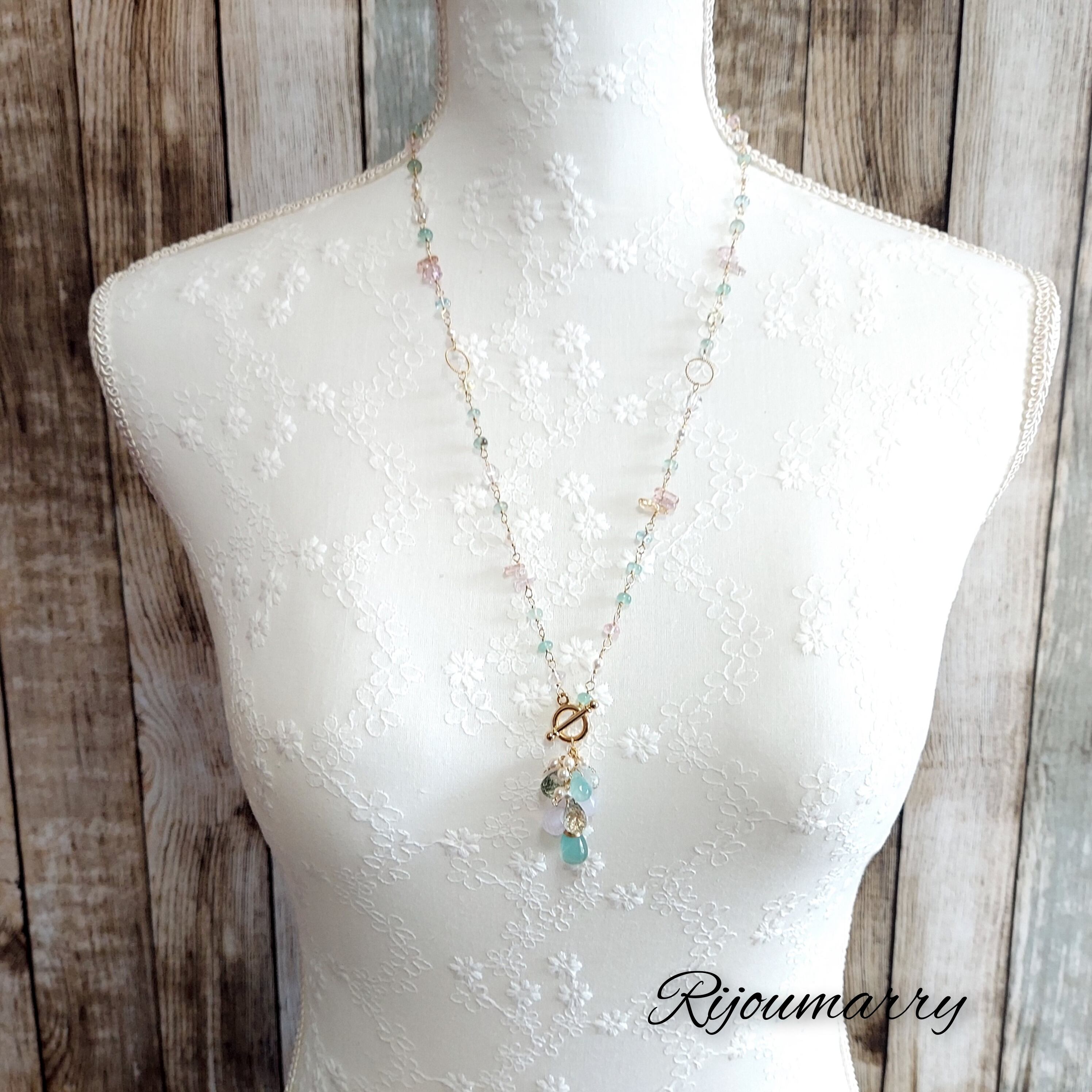 そんな希少なアクアプレーズと、てりつやが良いベビーあこや真珠、アクアマリンなどを組み合わせて2wayネックレスをお仕立てしました(*´︶`*)