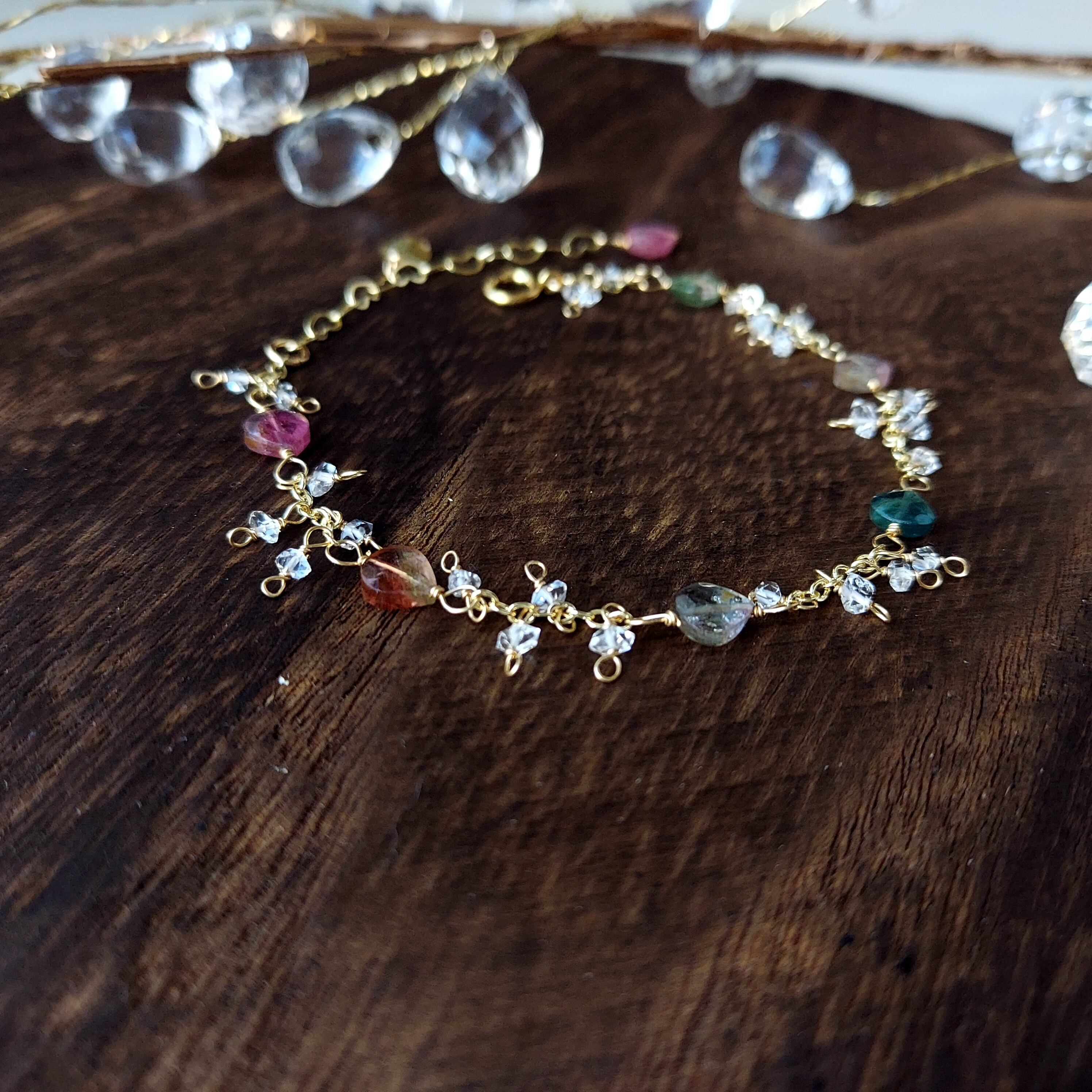 14kgf❁トルマリンとハーキマーダイヤモンドのブレスレット