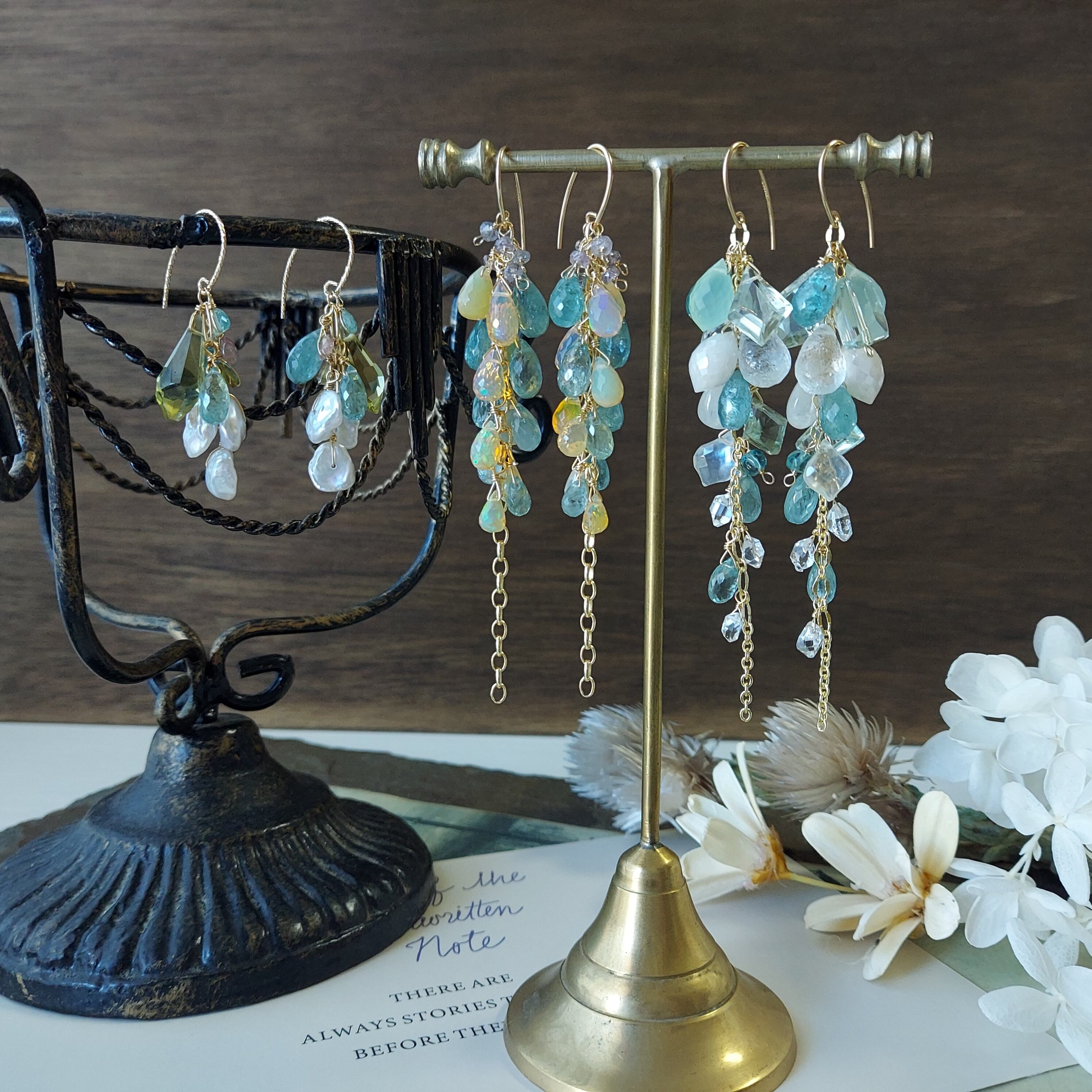 希少石ウォーターカイヤナイトのシャンデリアピアス