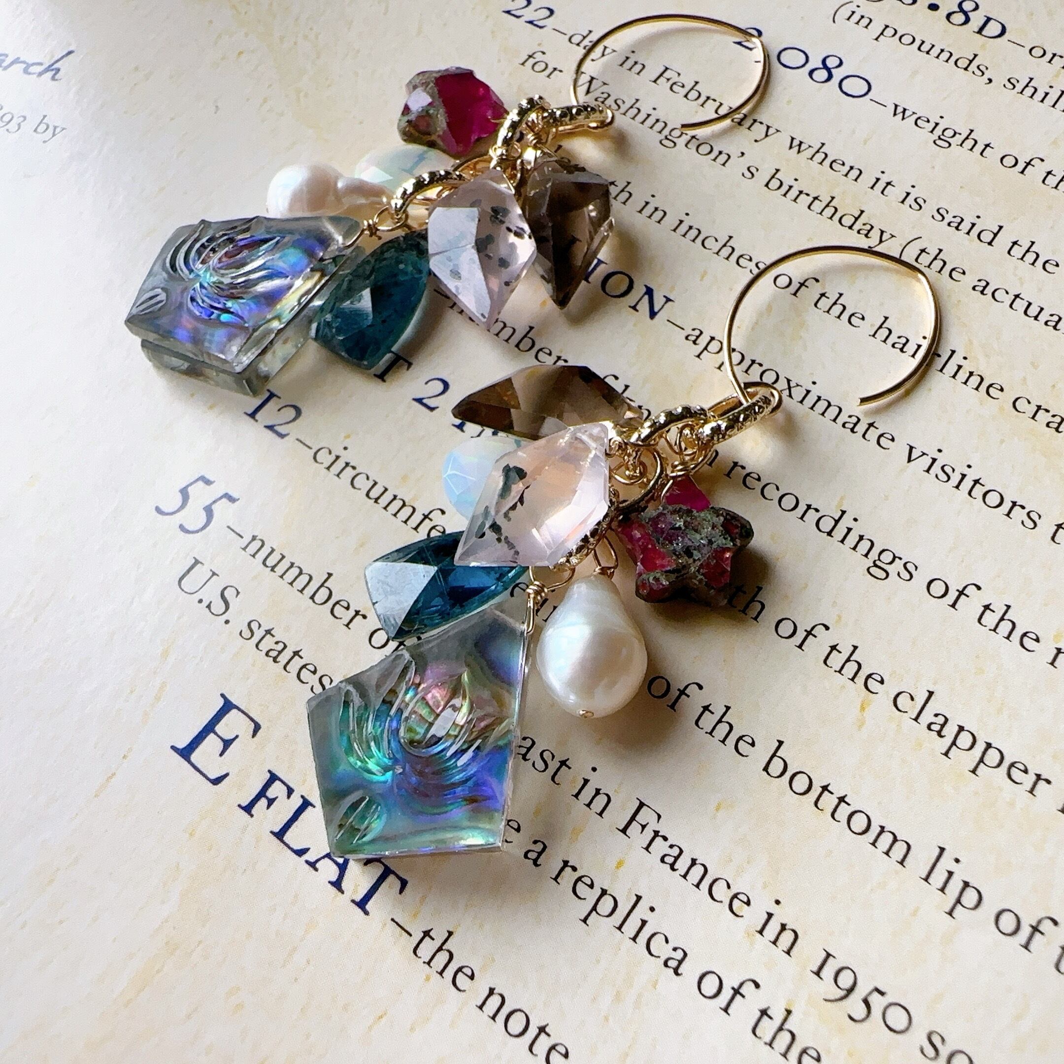 夏にピッタリの涼しげなクリスタル&アバロンシェルのトリプレットカービングを使用したピアスです♡