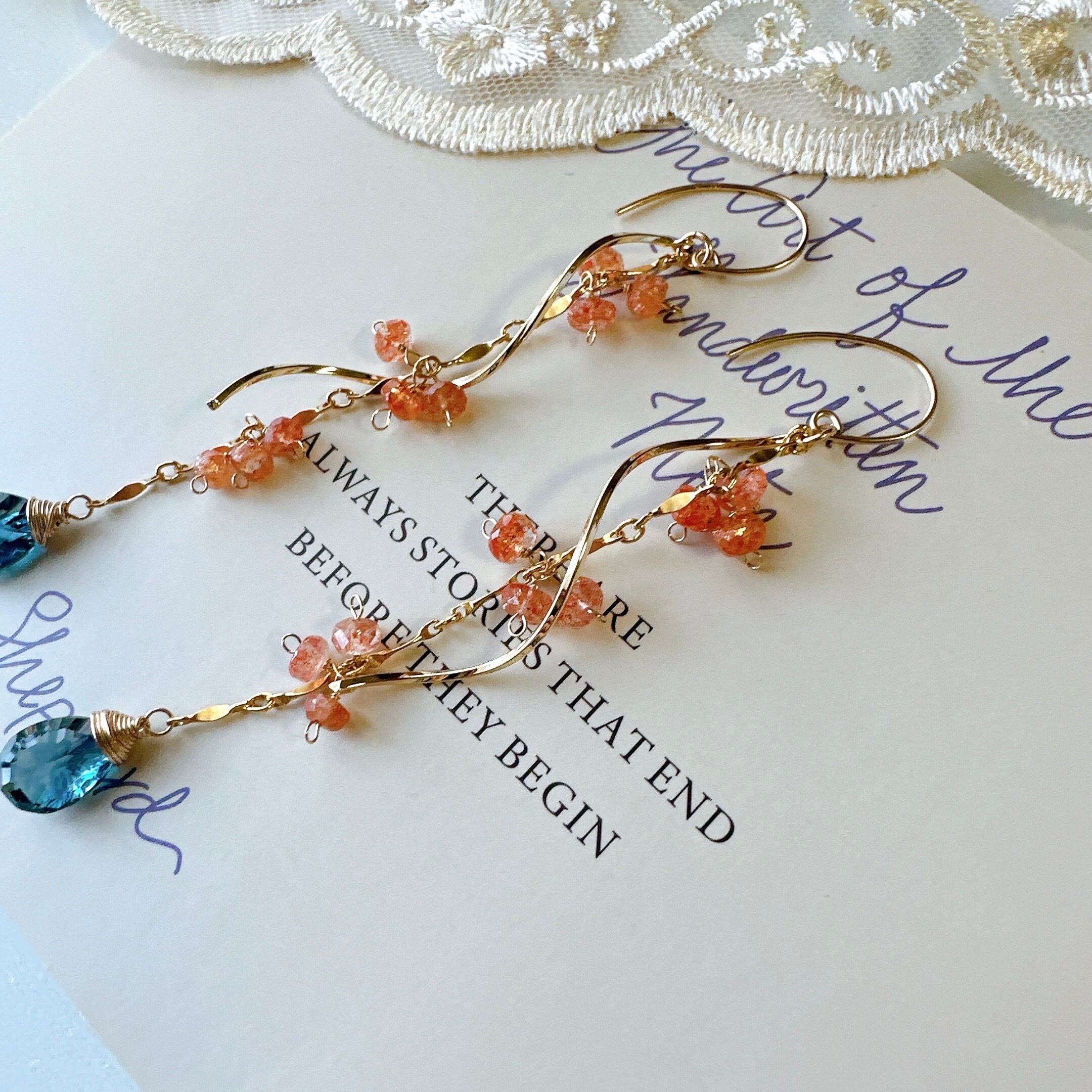 コンケーブロンドンブルートパーズとサンストーンのピアス