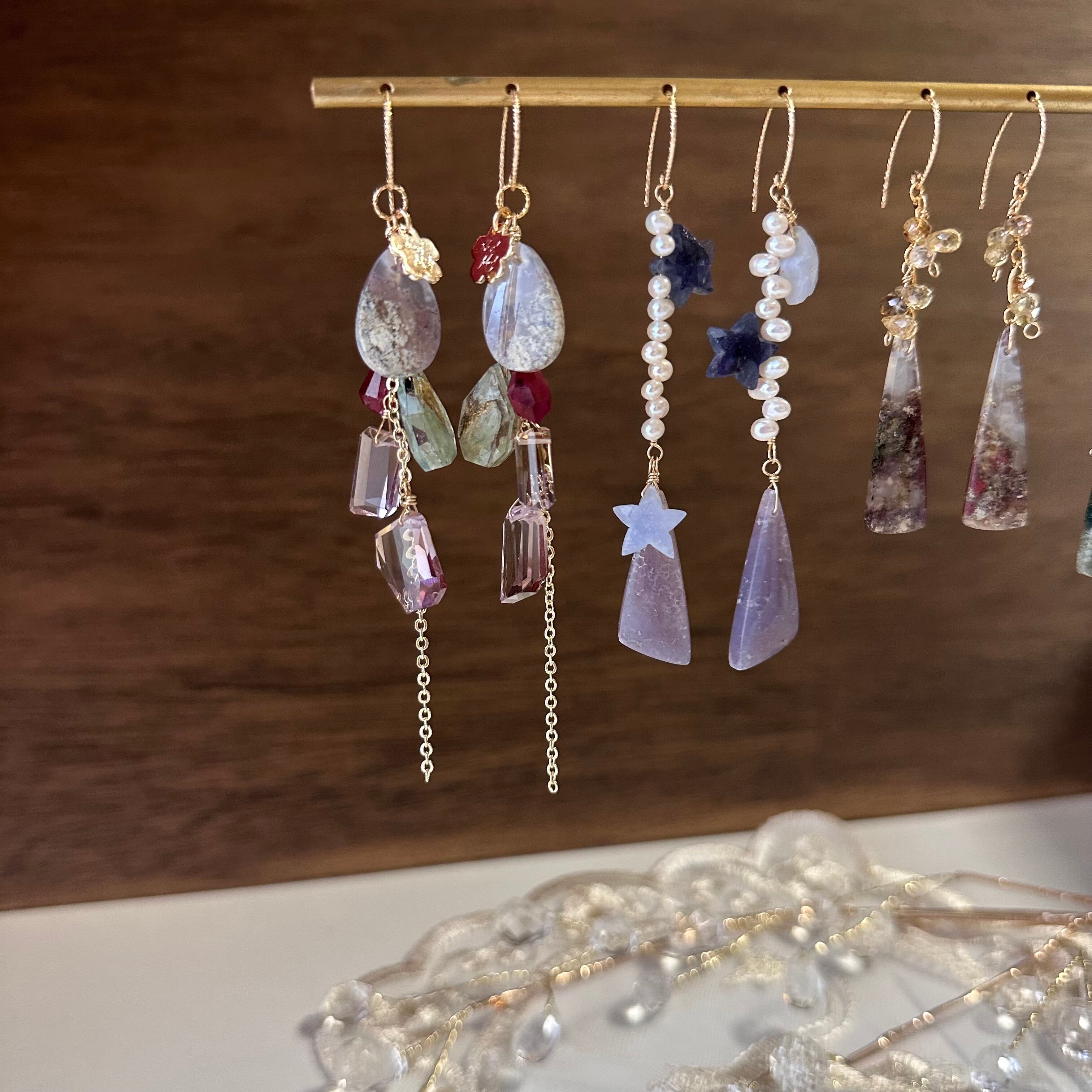 こちらはモスアゲートとアメトリンを合わせたピアスになります♡