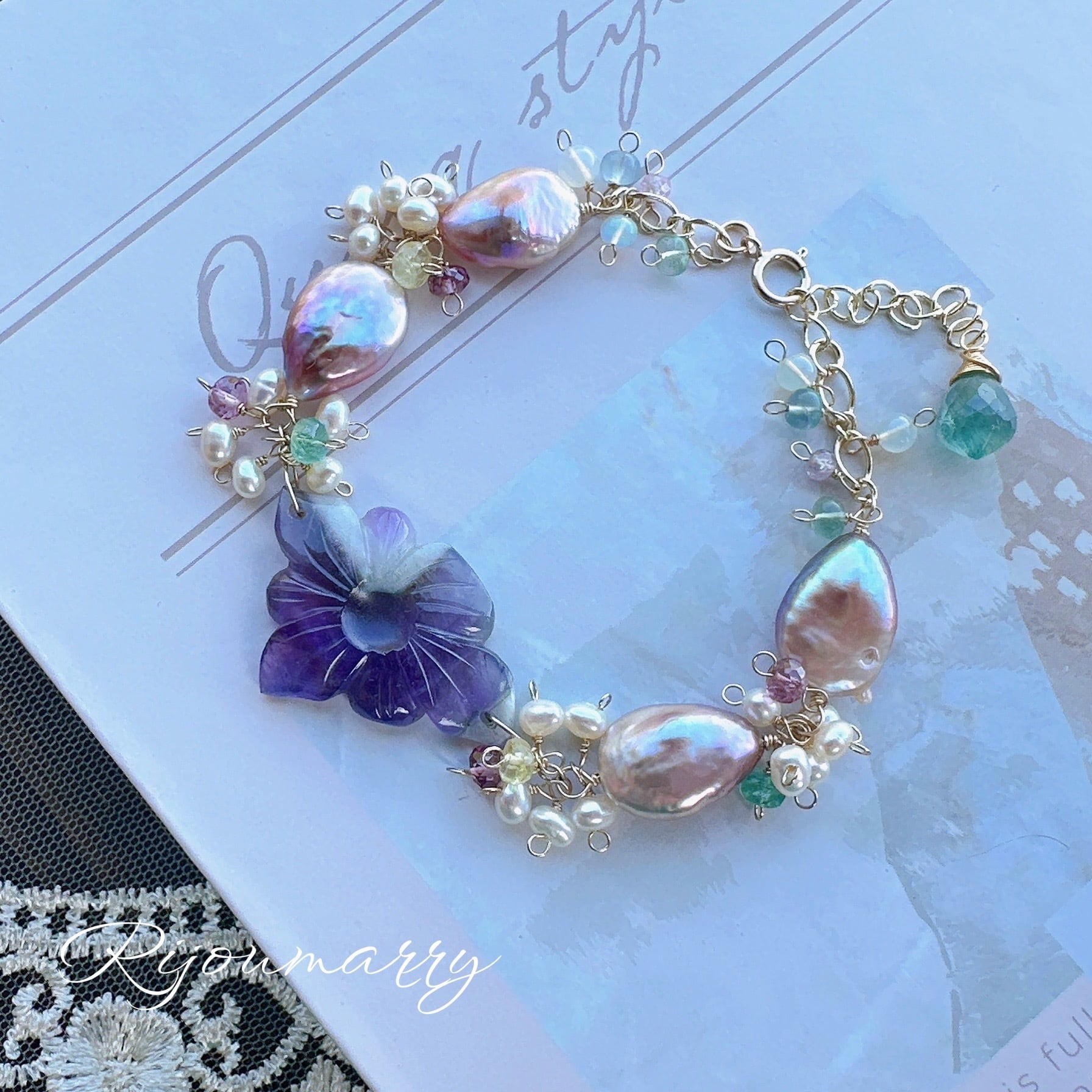 パールは天然色ながら、うっすらピンク色の部分もあり、とにかく照りと色が美しいです(˶> <˶)♡