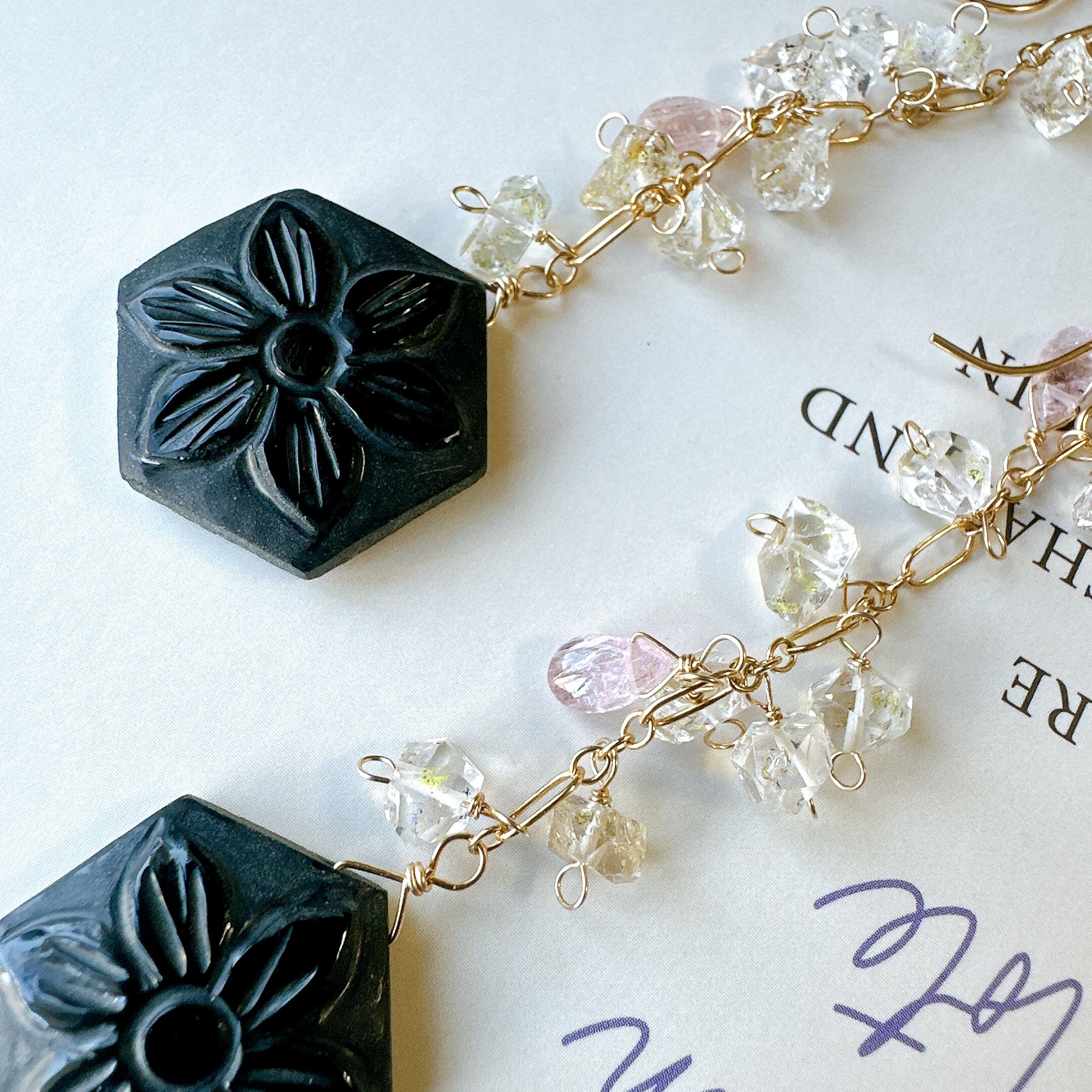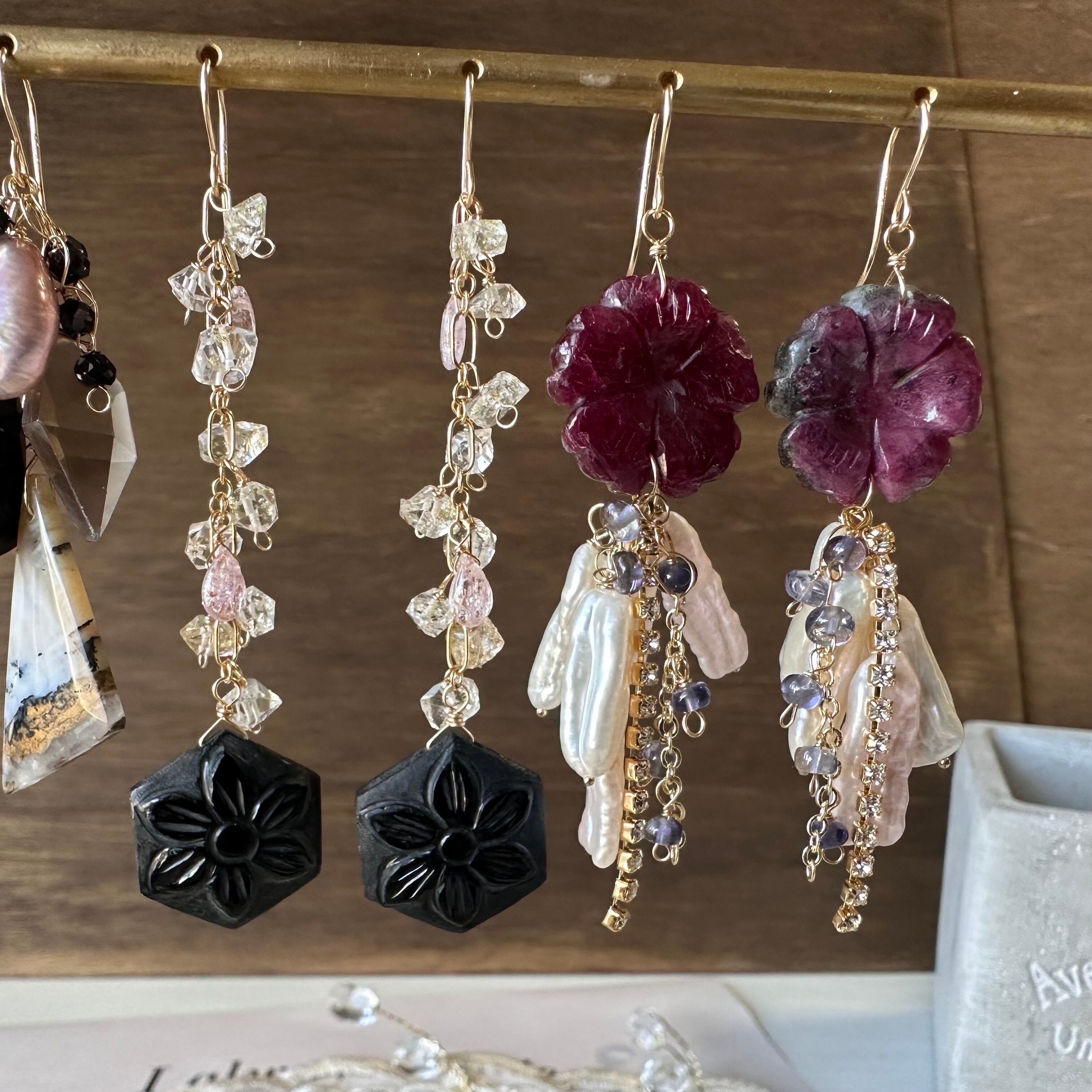 に、オイルインパーキマーとインペリアルトパーズを合わせたピアスです ·͜·♡