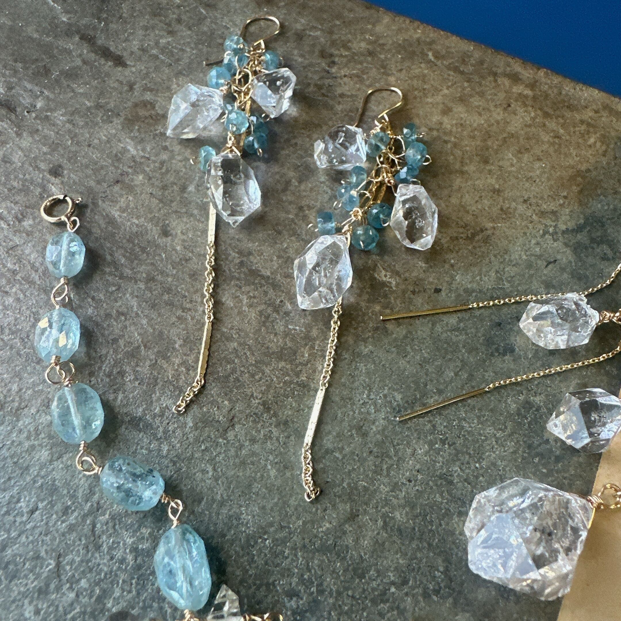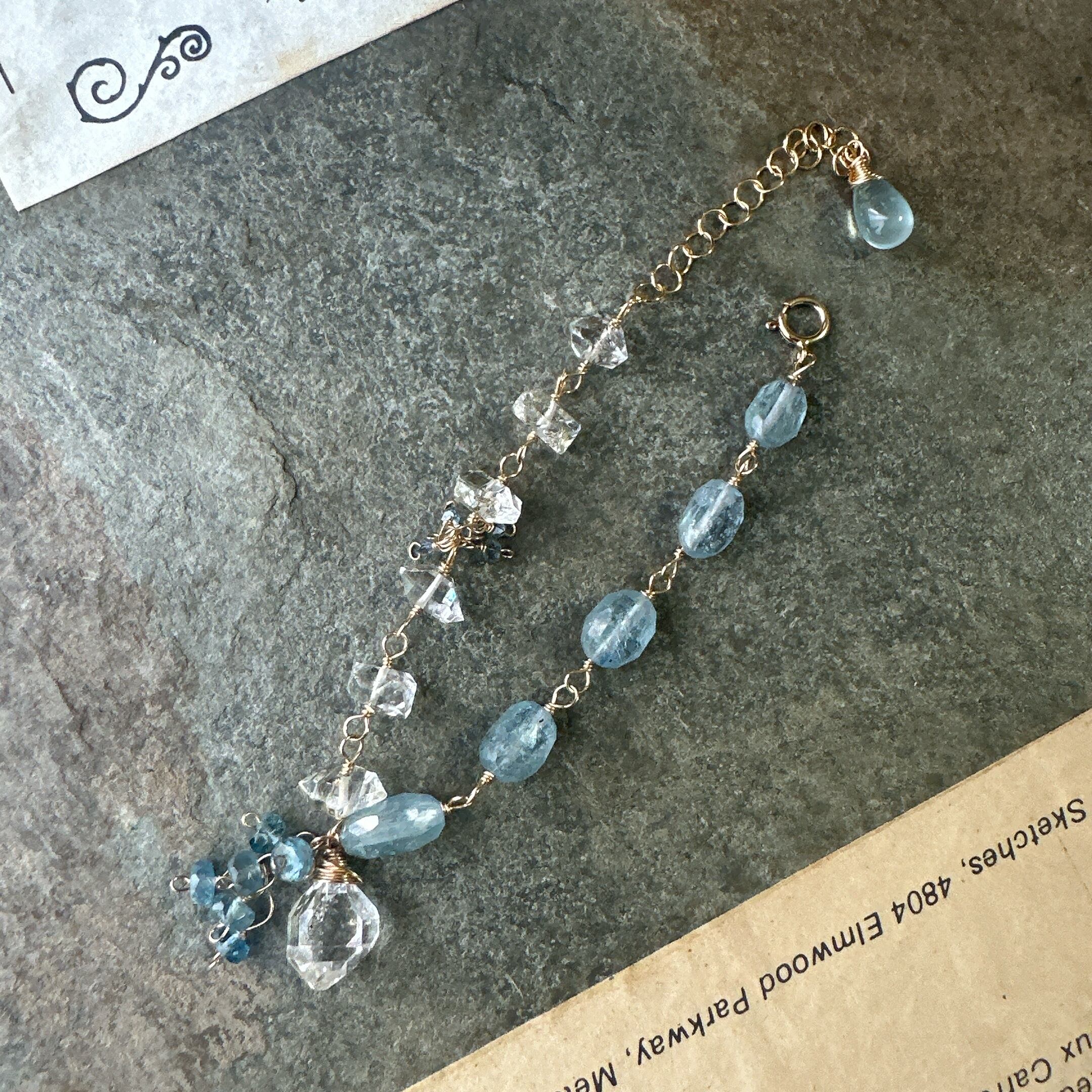 カイヤナイトと大粒ハーキマーのブレスレット