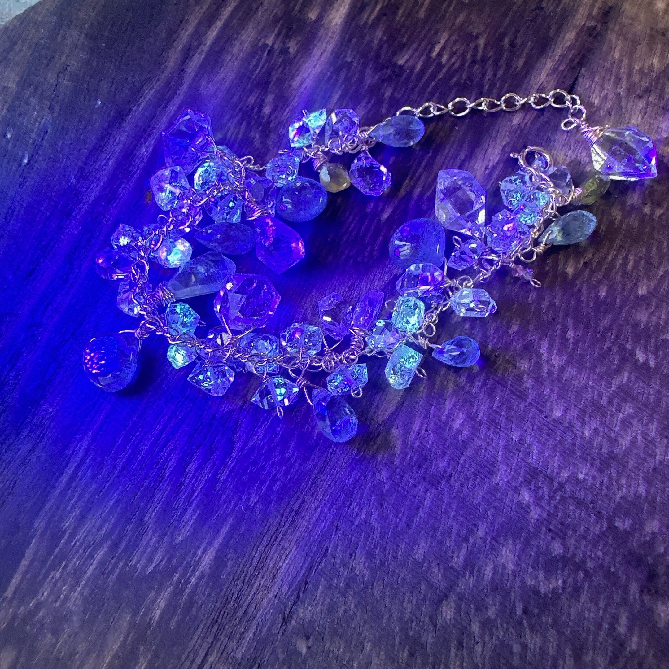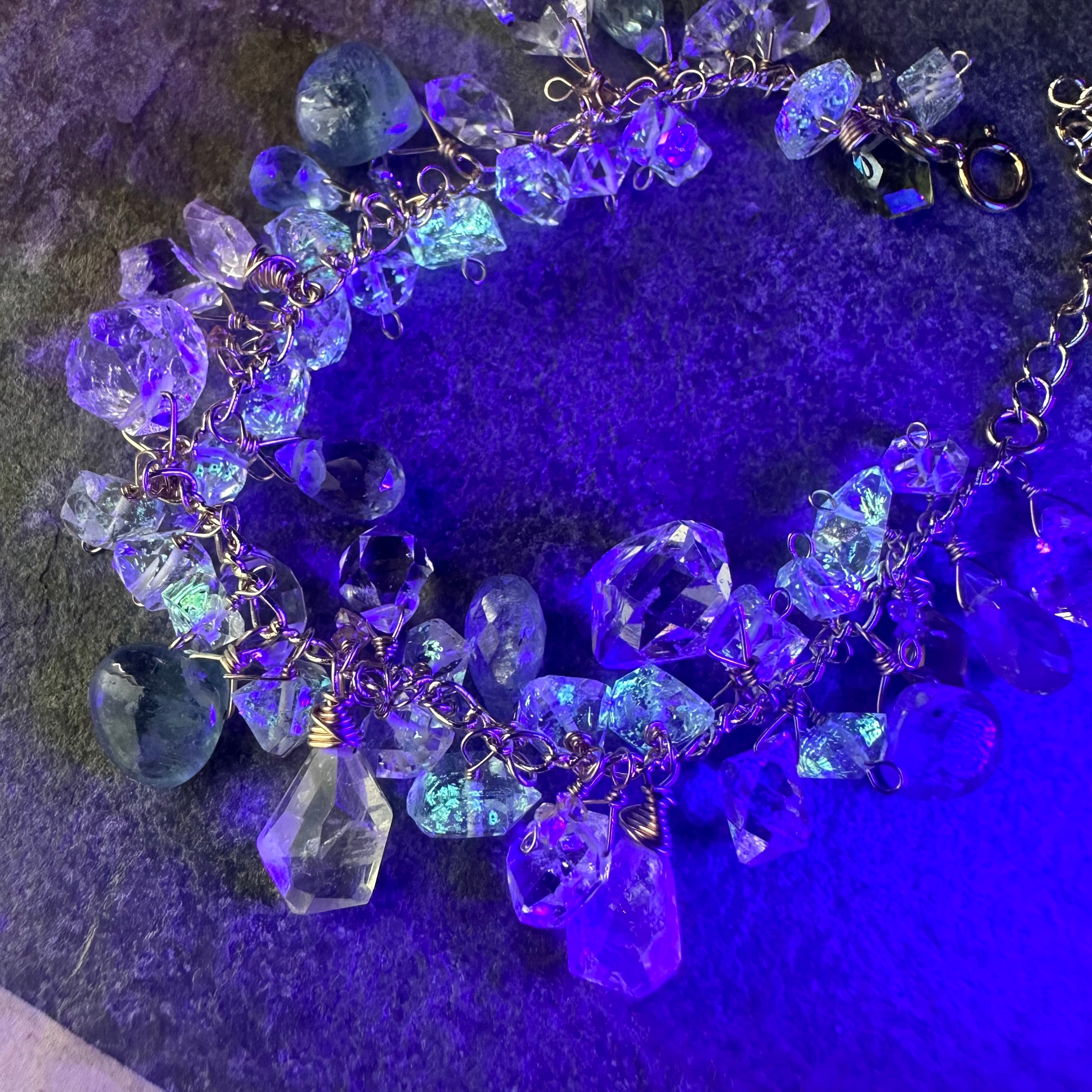 大粒ハーキマーダイヤモンドとカイヤナイトのしゃらしゃらブレスレット